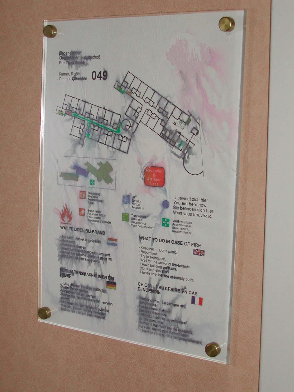 Ook komt men 'self-made' plattegronden tegen die grondig schoongemaakt zijn door de medewerkster van de huishoudelijke dienst; door vocht zijn de tekeningen vervaagd en onleesbaar geworden.